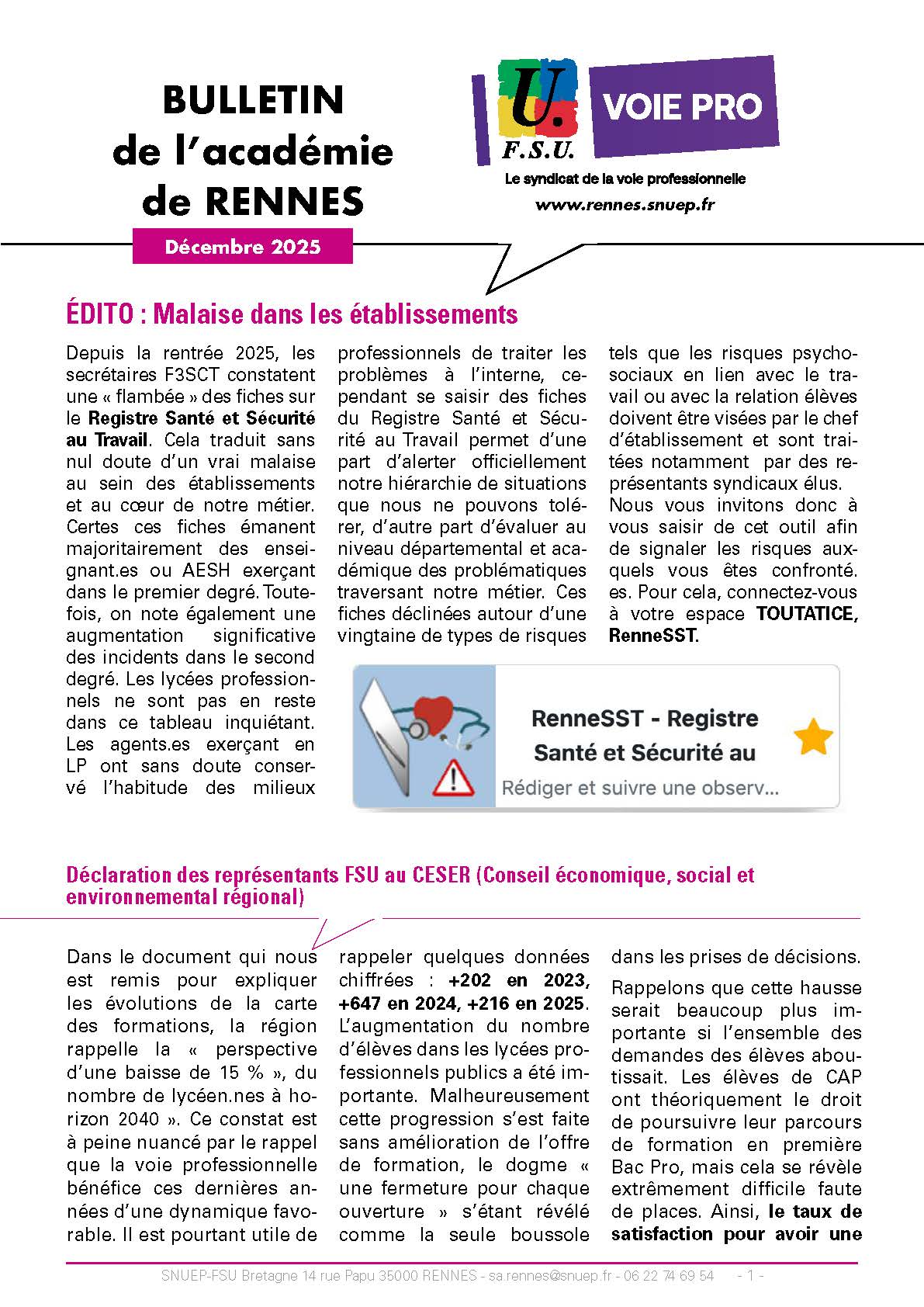 Pour nos organisations syndicales CGT Agri, CGT Educ’action, CNT-FTE, SE-UNSA, SNALC, SNEP-FSU, SNES-FSU, SNFOEP, SNUEP-FSU, SEA-UNSA, SNEP-UNSA, CGT Enseignement privé, SNETAA-FO, SNETAP-FSU, SNUPDEN-FSU, SUI-FSU, SUD rural, FO Enseignement agricole, SUNDEP-solidaires et SUD Éducation, l’urgence est de renforcer les lycées professionnels et de donner plus de temps et de moyens aux personnels pour faire réussir tous les élèves.